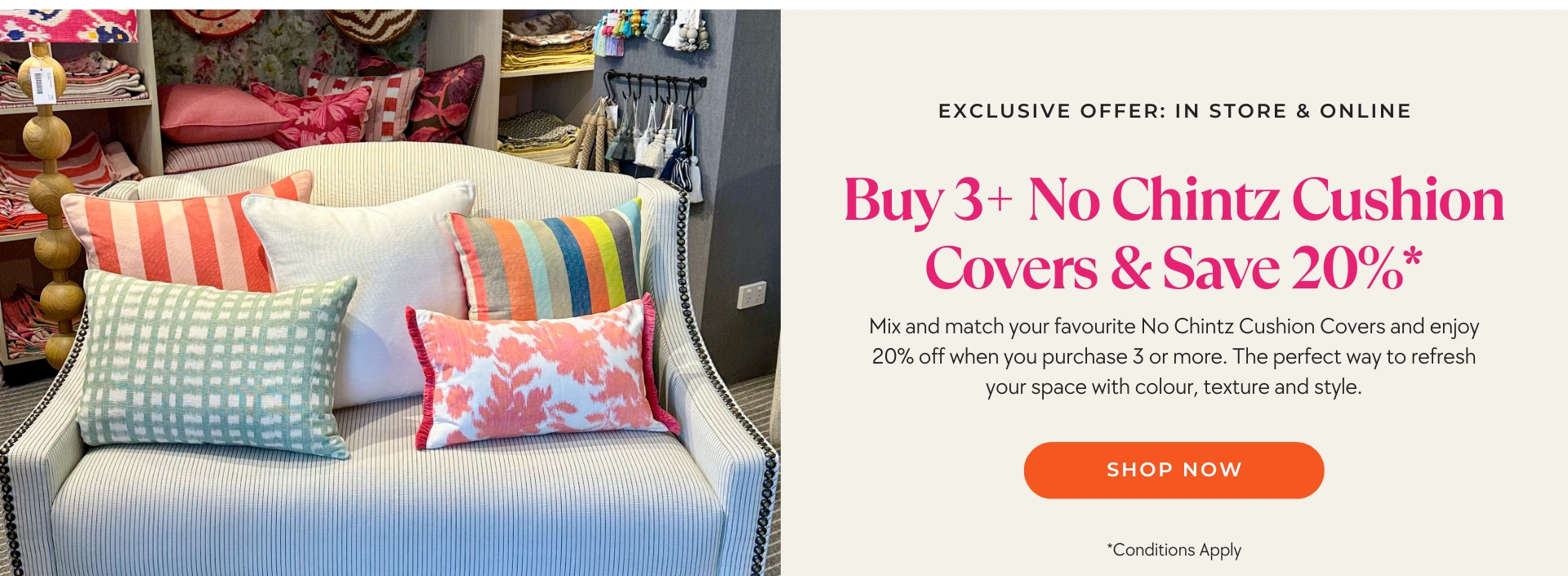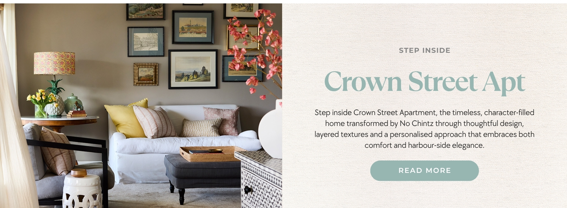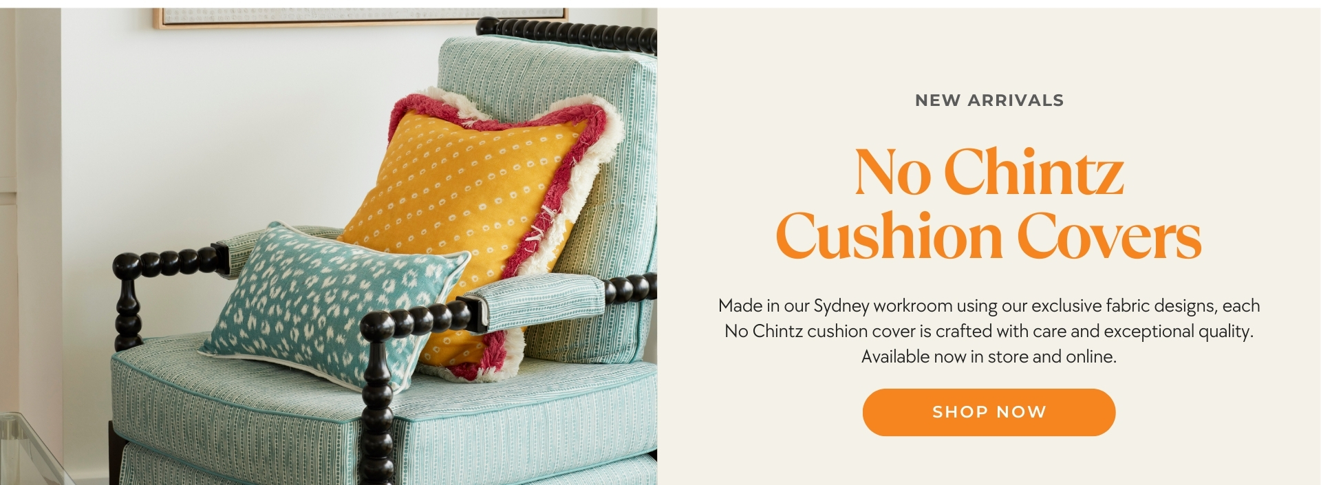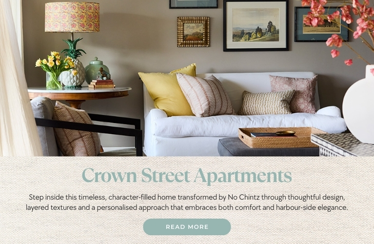 Explore our Sydney stores in Mosman, Willoughby and Woollahra, or browse our online fabric store to discover how No Chintz can transform your home with quality design and craftsmanship.