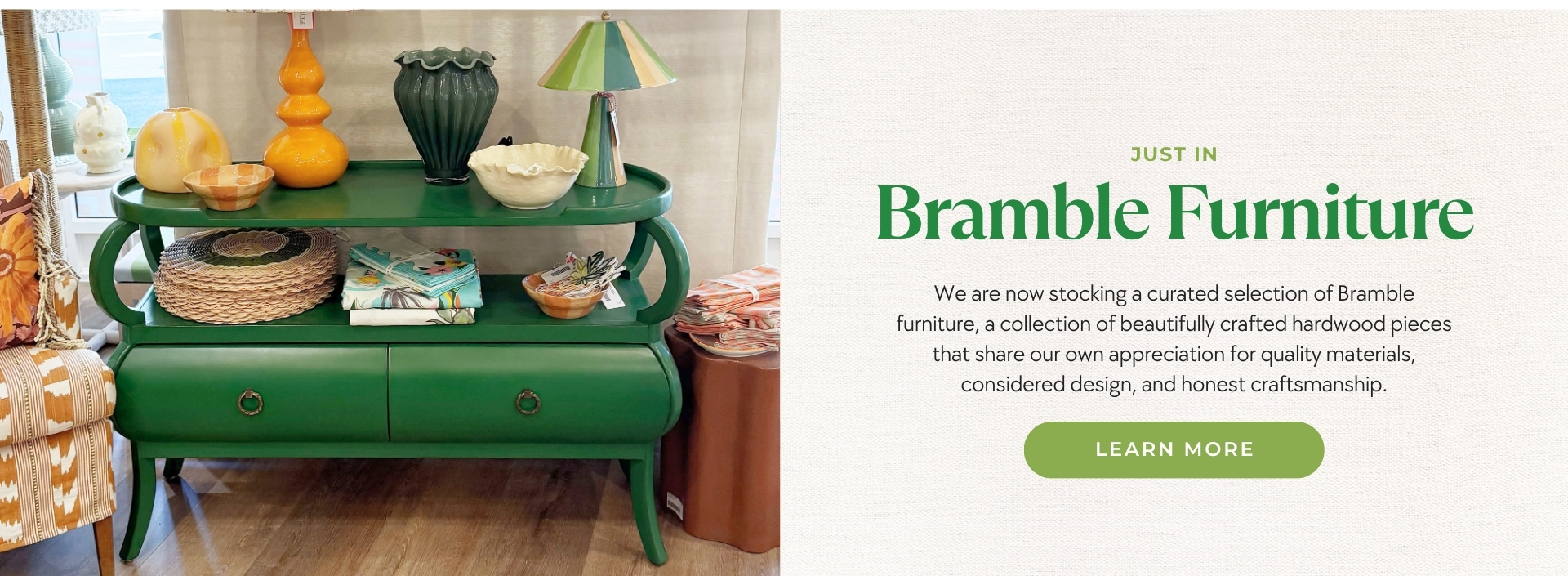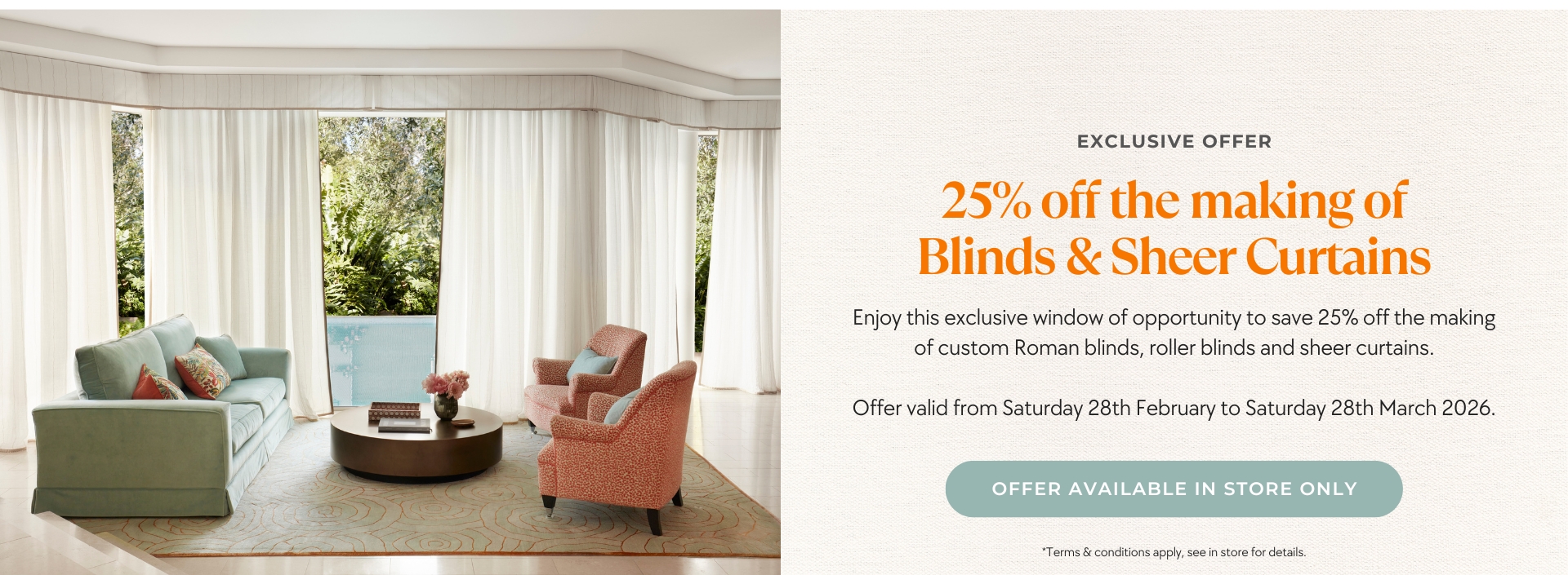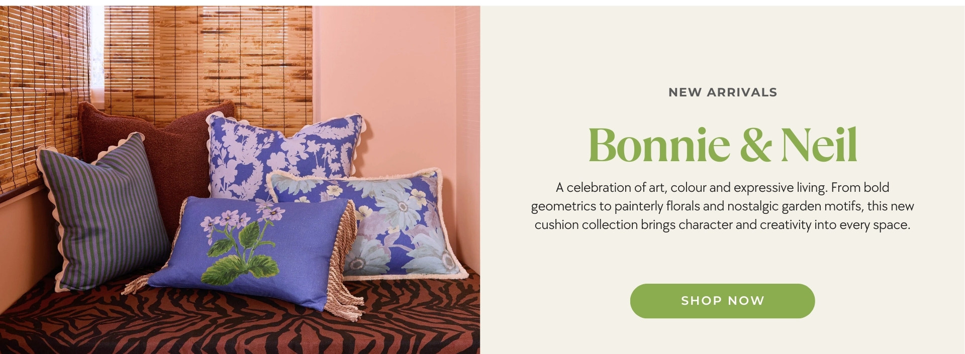 We offer pre made bedding, cushions, throws and some lampshades, however our manufacturing workroom in Sydney creates all our curtains, cushions and blinds and are also geniuses when it comes to creating bespoke items. We also offer a wide selection of beautiful fabrics suitable for curtains and blinds. If you have a particular requirement for soft furnishings, please talk to our team — we’re always happy to help and can provide custom solutions to suit your budget.