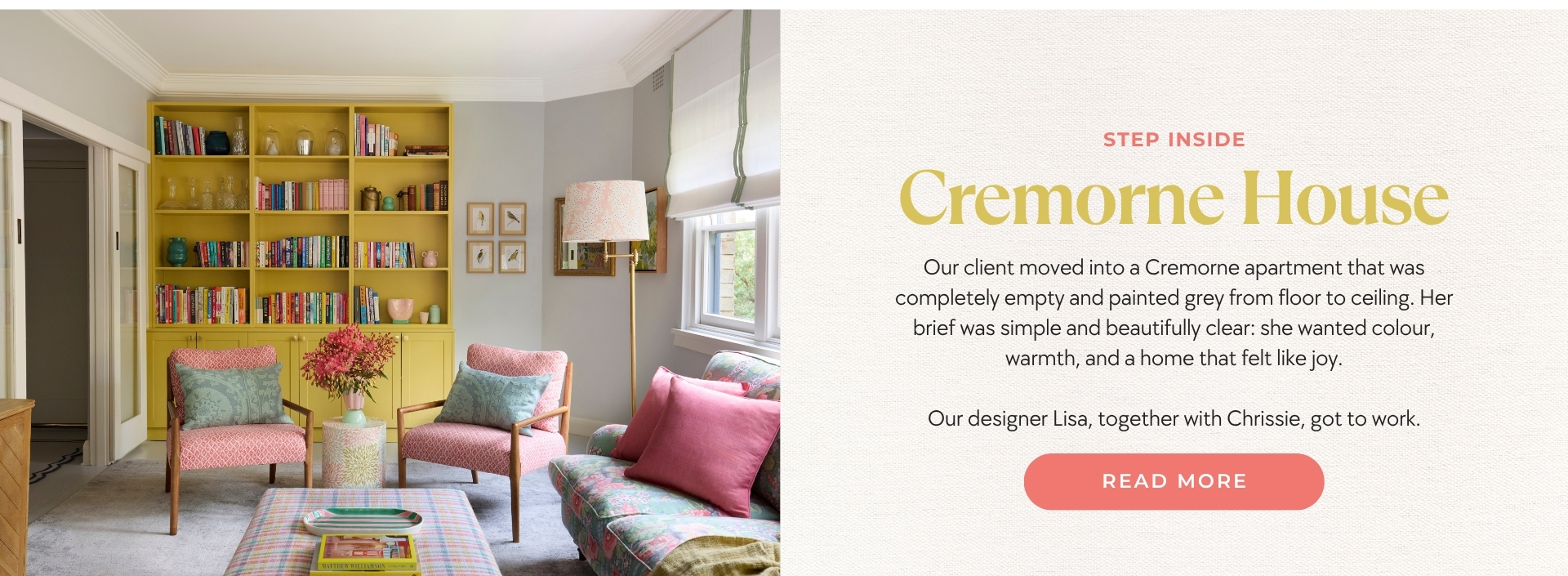 Explore our Sydney stores in Mosman, Willoughby and Woollahra, or browse our online fabric store to discover how No Chintz can transform your home with quality design and craftsmanship.