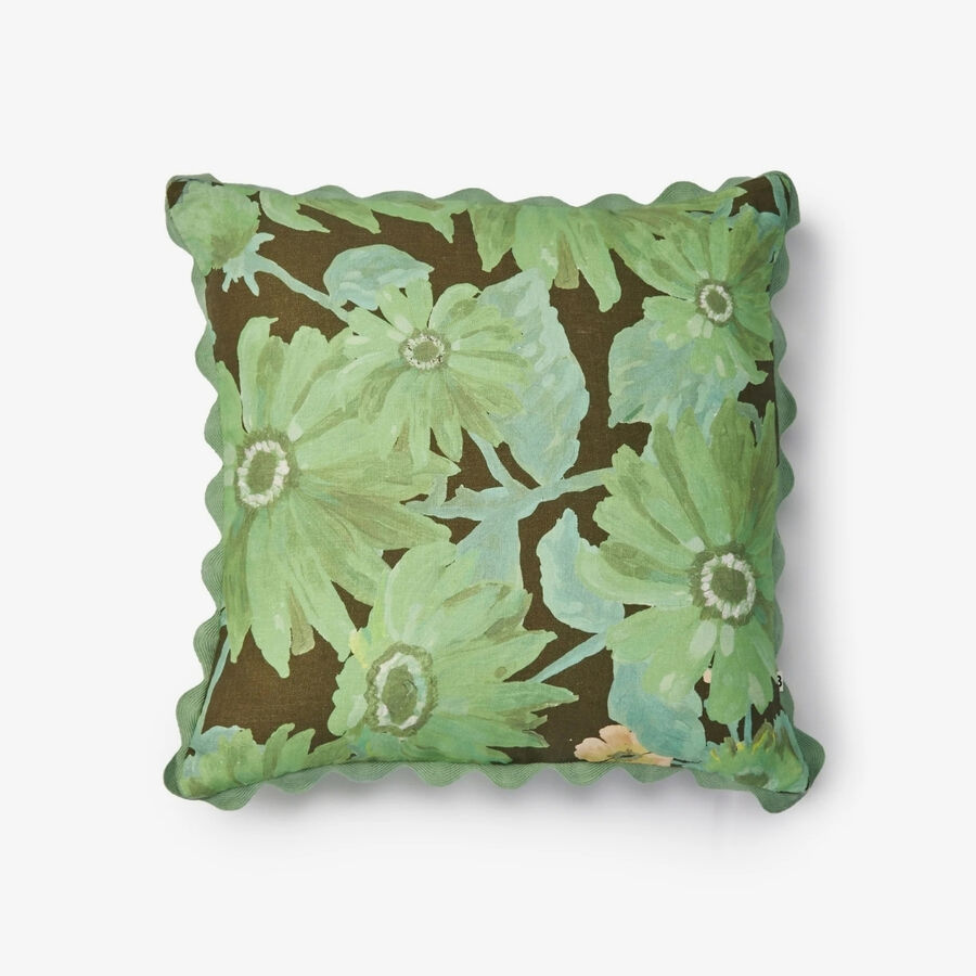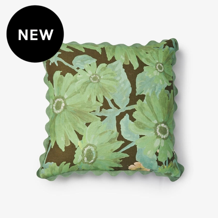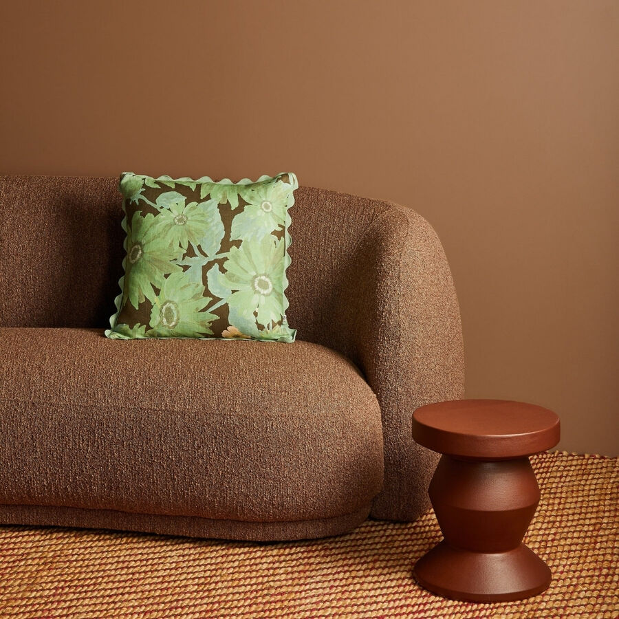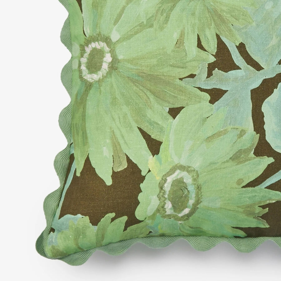 Painterly marigold florals in earthy khaki tones bring warmth and depth to this linen cushion. Natural and expressive, it layers beautifully into both neutral and colourful interiors.