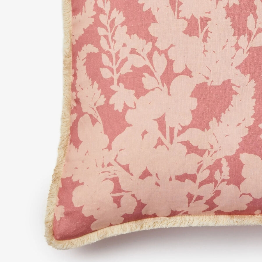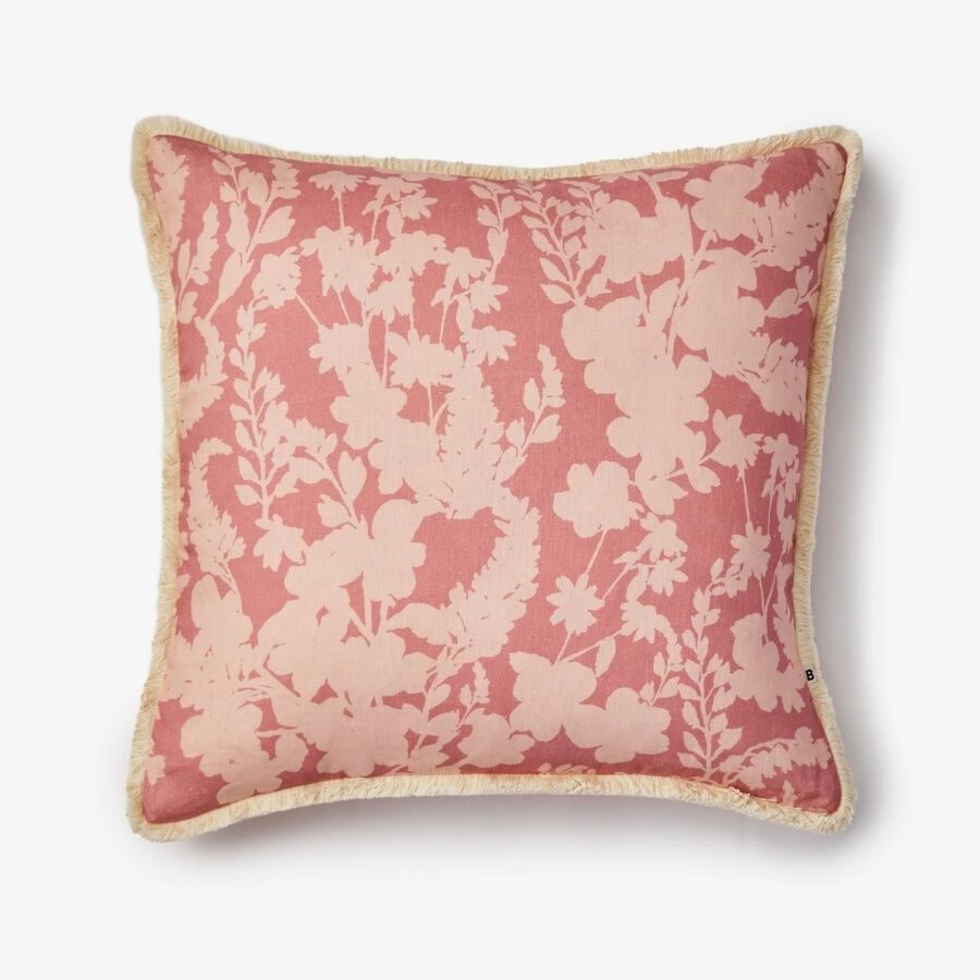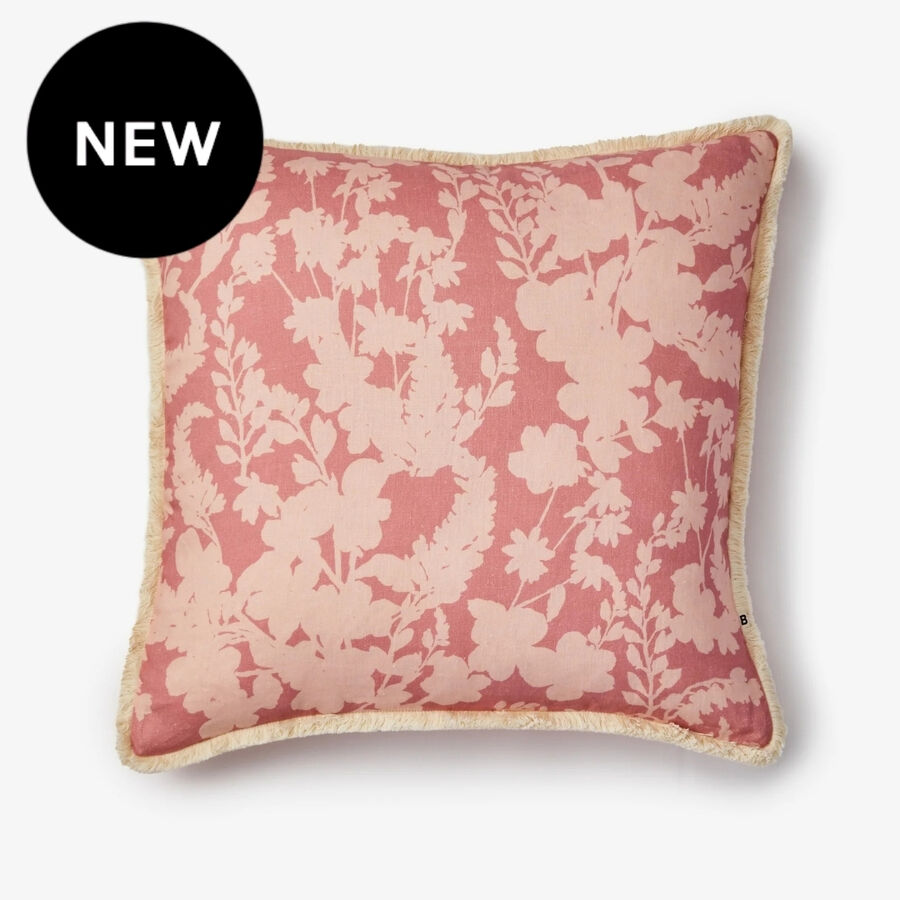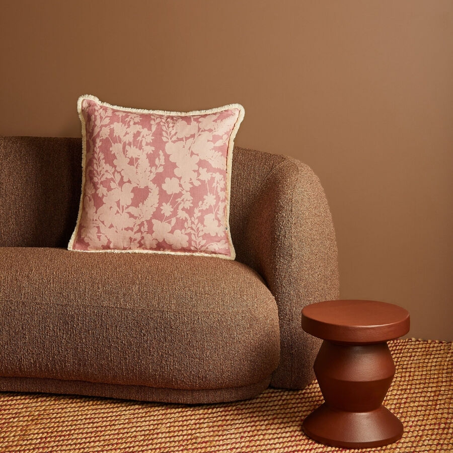 Soft pink petal silhouettes bring a gentle, romantic feel to this linen cushion. Light and understated, it adds warmth and quiet pattern without overwhelming a space.