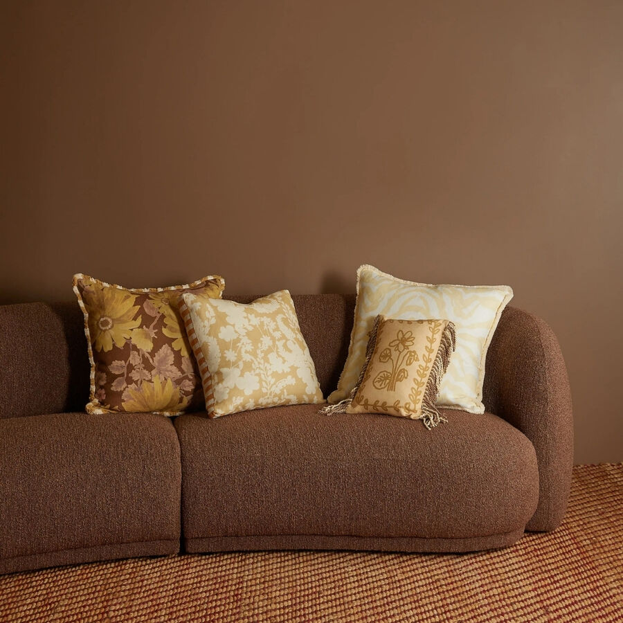 This petite vertical linen cushion showcases the Petra geometric pattern in warm wheat tones. Soft and understated, it’s an easy decorative accent for layering on beds or benches.
