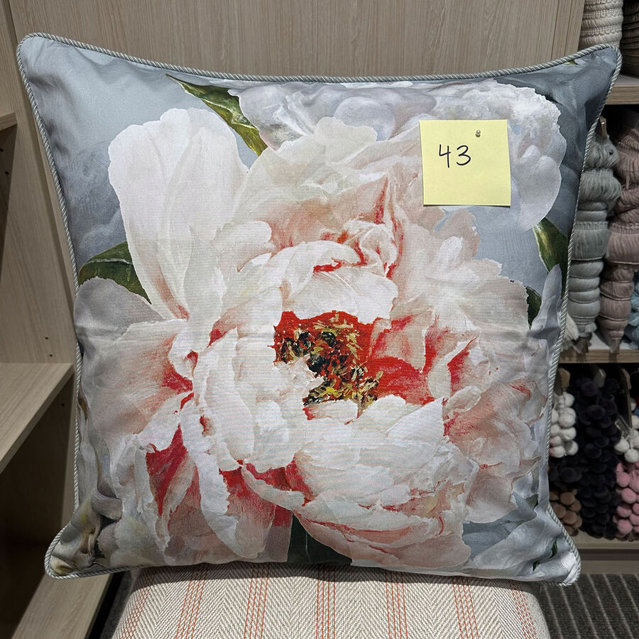 Designers Guild Peonia Grande Zinc with Ruff French Grey Piped Cushion Cover, 60cm