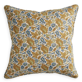 Inspired by the motifs on a beautiful hand painted ceramic vessel from Valencia, Maluku is a festive print featuring a rich palette of colours. This cushion has been hand block printed by skilled artisans in India.