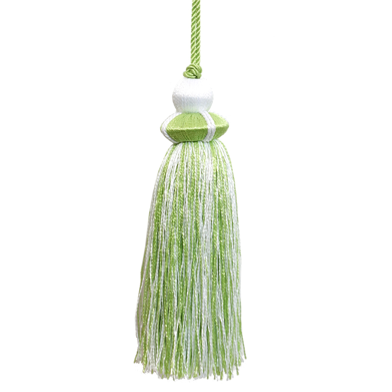A shiny, oriental style tassel perfect for cushion corners, at the edge of an oriental pelmet or highlighting a drawer key.