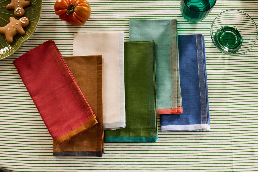 Each napkin is finished with a machine stitched hem and contrast border.