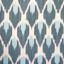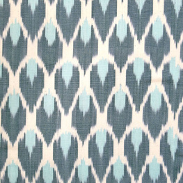 A medium sized repetitive leaf style ikat fabric that is suitable for blinds, curtains, cushions and brings an exotic but subtle patterning to interiors.