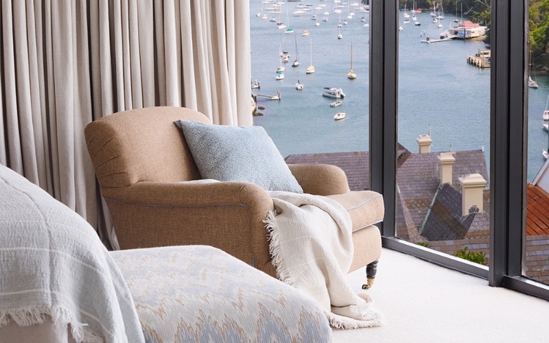 Perched high above Sydney Harbour with sweeping views to North Sydney and the Harbour Bridge, Mosman House 3 is a refined family home brought to life by No Chintz. Recently renovated and thoughtfully furnished, this project balances natural textures, layered colour and practical elegance to create a home that feels both relaxed and quietly luxurious.