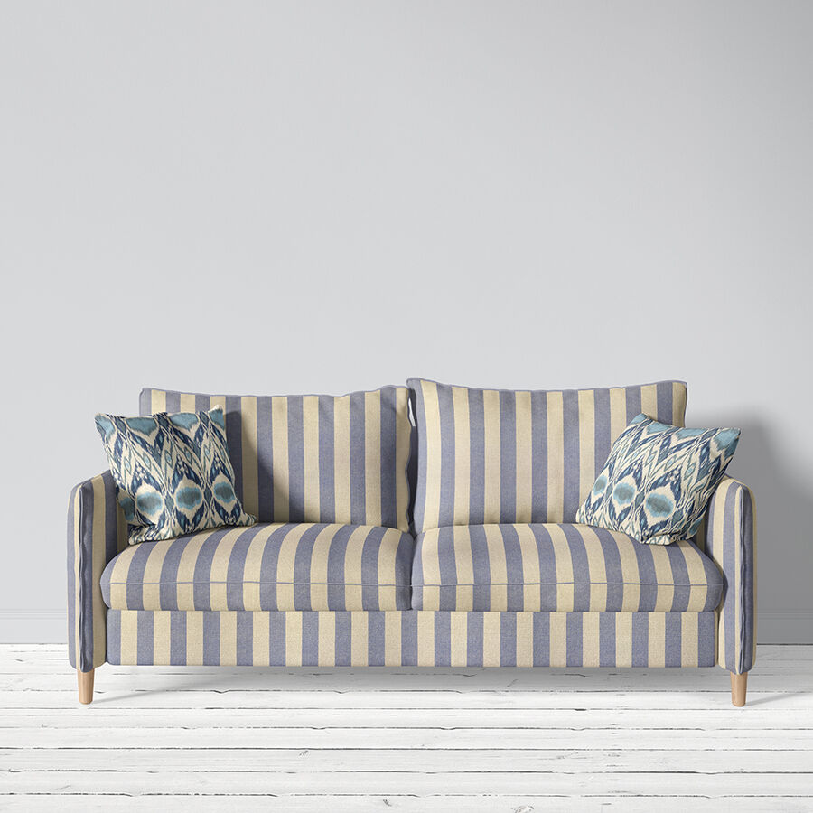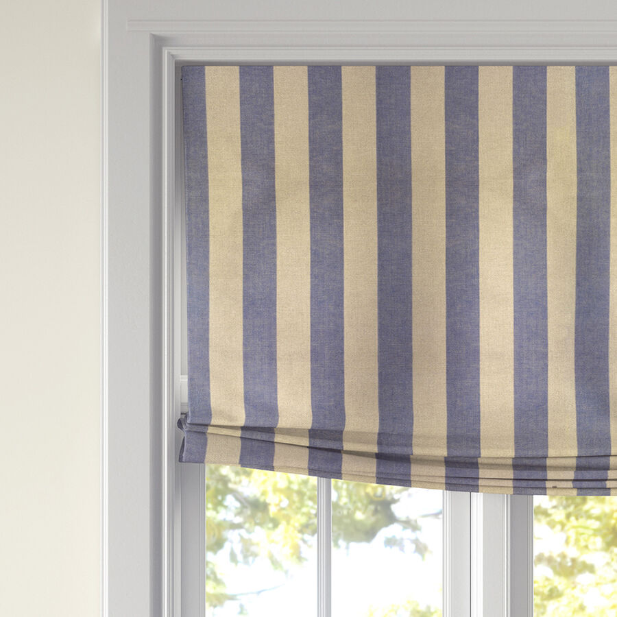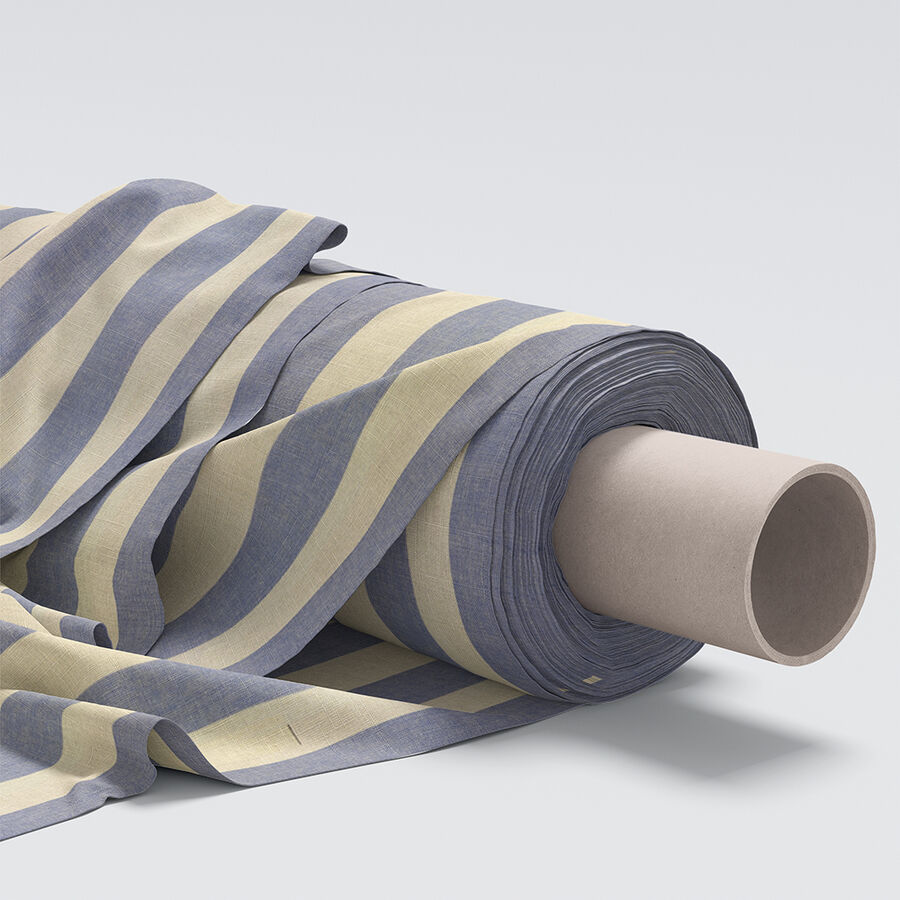 Pavilion Stripe Cotton Fabric - Putty/Bluebell